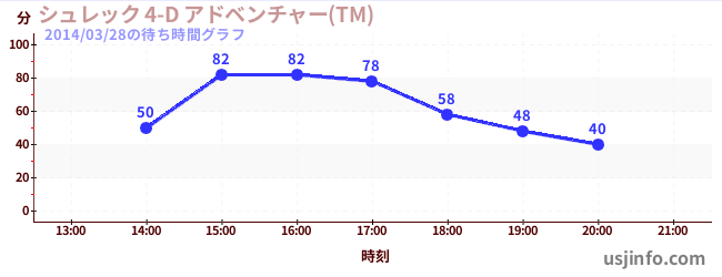• シュレック 4-D アドベンチャー(TM)$B$N(B2014年03月28日の待ち時間