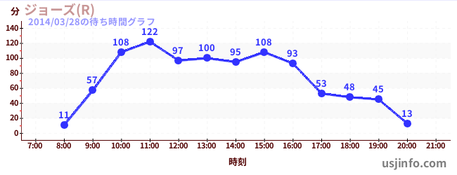 • ジョーズ(R)$B$N(B2014年03月28日の待ち時間
