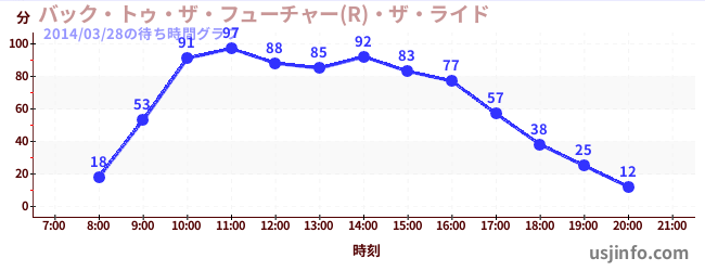 • バック・トゥ・ザ・フューチャー(R)・ザ・ライド$B$N(B2014年03月28日の待ち時間