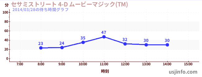 • セサミストリート 4-D ムービーマジック(TM)$B$N(B2014年03月28日の待ち時間
