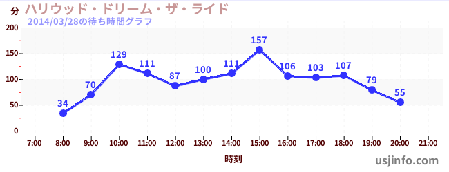 • ハリウッド・ドリーム・ザ・ライド$B$N(B2014年03月28日の待ち時間