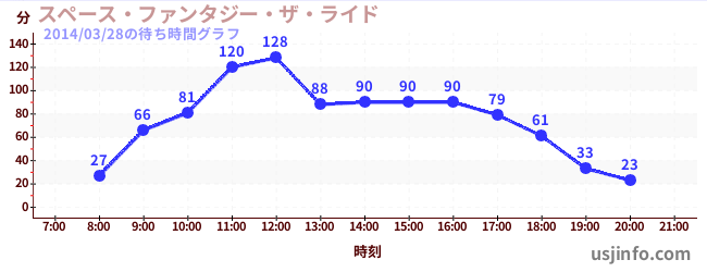 • スペース・ファンタジー・ザ・ライド$B$N(B2014年03月28日の待ち時間