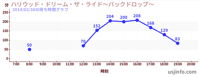 • ハリウッド・ドリーム・ザ・ライド〜バックドロップ〜$B$N(B2014年03月30日の待ち時間