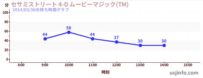 • セサミストリート 4-D ムービーマジック(TM)$B$N(B2014年03月30日の待ち時間