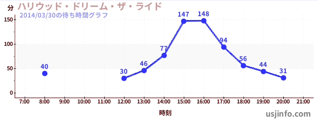 • ハリウッド・ドリーム・ザ・ライド$B$N(B2014年03月30日の待ち時間