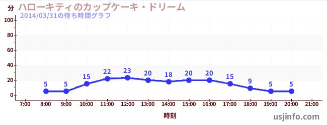 • ハローキティのカップケーキ・ドリーム$B$N(B2014年03月31日の待ち時間