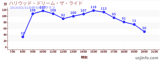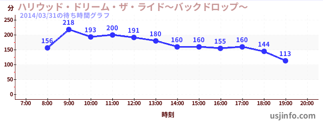 • ハリウッド・ドリーム・ザ・ライド〜バックドロップ〜$B$N(B2014年03月31日の待ち時間