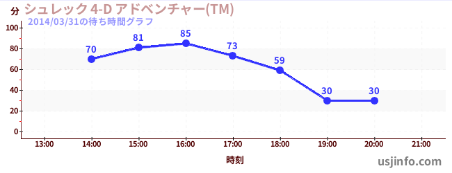 • シュレック 4-D アドベンチャー(TM)$B$N(B2014年03月31日の待ち時間