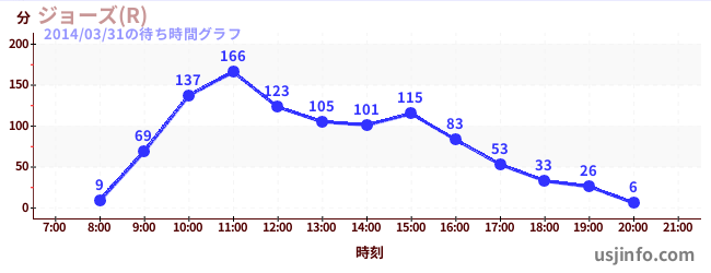 • ジョーズ(R)$B$N(B2014年03月31日の待ち時間
