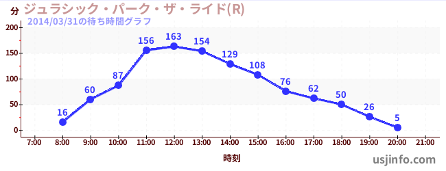 • ジュラシック・パーク・ザ・ライド(R)$B$N(B2014年03月31日の待ち時間