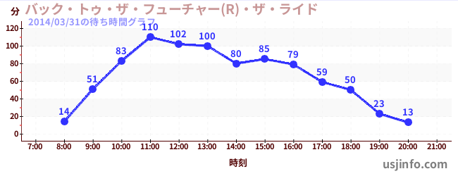 • バック・トゥ・ザ・フューチャー(R)・ザ・ライド$B$N(B2014年03月31日の待ち時間