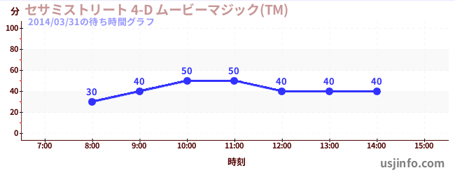 • セサミストリート 4-D ムービーマジック(TM)$B$N(B2014年03月31日の待ち時間