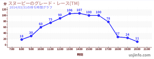 • スヌーピーのグレード・レース(TM)$B$N(B2014年03月31日の待ち時間