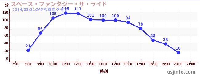 • スペース・ファンタジー・ザ・ライド$B$N(B2014年03月31日の待ち時間
