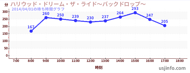 • ハリウッド・ドリーム・ザ・ライド〜バックドロップ〜$B$N(B2014年04月01日の待ち時間