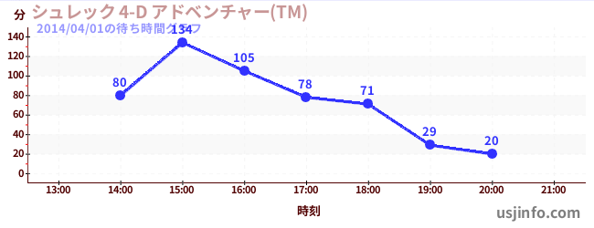 • シュレック 4-D アドベンチャー(TM)$B$N(B2014年04月01日の待ち時間