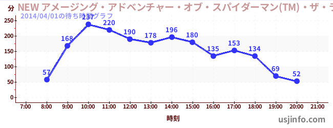 • NEW アメージング・アドベンチャー・オブ・スパイダーマン(TM)・ザ・ライド 4K3D$B$N(B2014年04月01日の待ち時間