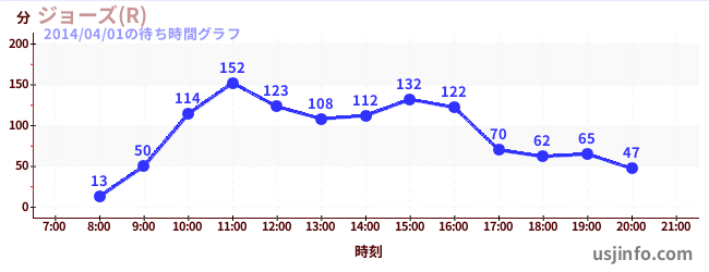 • ジョーズ(R)$B$N(B2014年04月01日の待ち時間