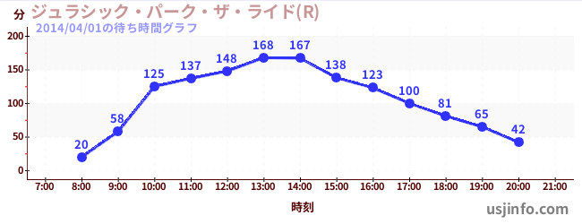 • ジュラシック・パーク・ザ・ライド(R)$B$N(B2014年04月01日の待ち時間