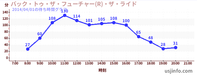 • バック・トゥ・ザ・フューチャー(R)・ザ・ライド$B$N(B2014年04月01日の待ち時間