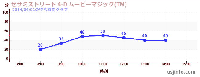 • セサミストリート 4-D ムービーマジック(TM)$B$N(B2014年04月01日の待ち時間