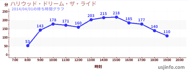 • ハリウッド・ドリーム・ザ・ライド$B$N(B2014年04月01日の待ち時間