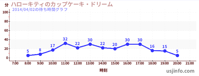 • ハローキティのカップケーキ・ドリーム$B$N(B2014年04月02日の待ち時間