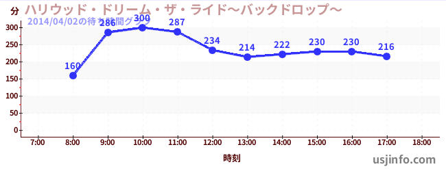 • ハリウッド・ドリーム・ザ・ライド〜バックドロップ〜$B$N(B2014年04月02日の待ち時間
