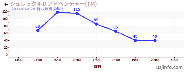 • シュレック 4-D アドベンチャー(TM)$B$N(B2014年04月02日の待ち時間