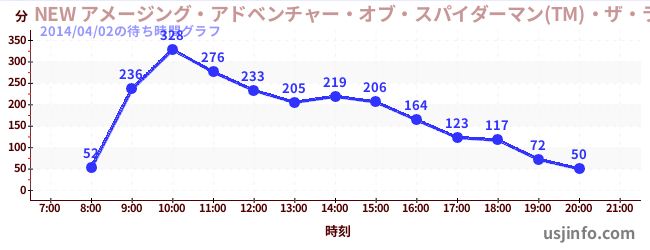 • NEW アメージング・アドベンチャー・オブ・スパイダーマン(TM)・ザ・ライド 4K3D$B$N(B2014年04月02日の待ち時間