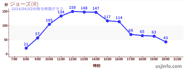 • ジョーズ(R)$B$N(B2014年04月02日の待ち時間