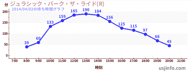 • ジュラシック・パーク・ザ・ライド(R)$B$N(B2014年04月02日の待ち時間
