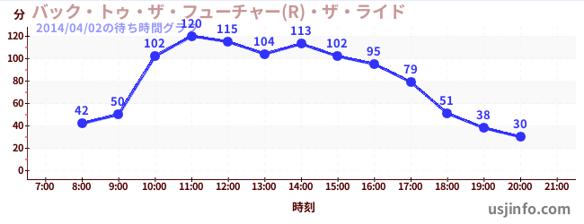 • バック・トゥ・ザ・フューチャー(R)・ザ・ライド$B$N(B2014年04月02日の待ち時間