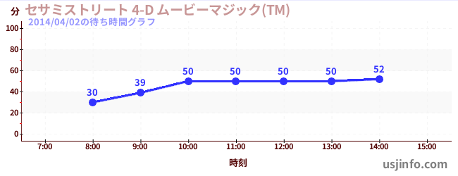 • セサミストリート 4-D ムービーマジック(TM)$B$N(B2014年04月02日の待ち時間