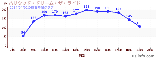 • ハリウッド・ドリーム・ザ・ライド$B$N(B2014年04月02日の待ち時間
