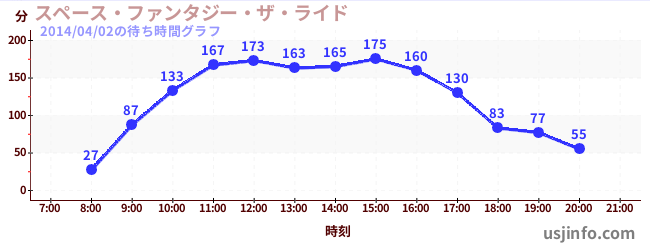 • スペース・ファンタジー・ザ・ライド$B$N(B2014年04月02日の待ち時間