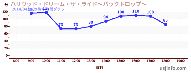 • ハリウッド・ドリーム・ザ・ライド〜バックドロップ〜$B$N(B2014年04月08日の待ち時間