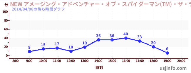 • NEW アメージング・アドベンチャー・オブ・スパイダーマン(TM)・ザ・ライド 4K3D$B$N(B2014年04月08日の待ち時間