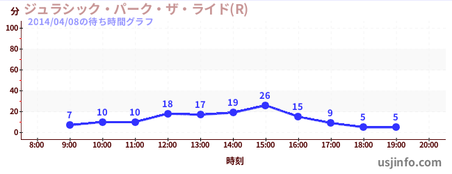 • ジュラシック・パーク・ザ・ライド(R)$B$N(B2014年04月08日の待ち時間