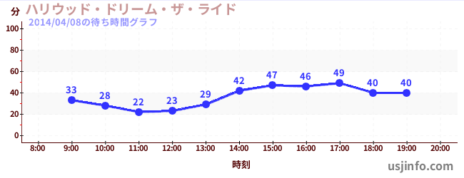 • ハリウッド・ドリーム・ザ・ライド$B$N(B2014年04月08日の待ち時間