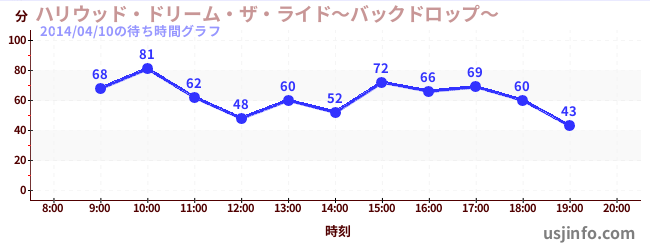 • ハリウッド・ドリーム・ザ・ライド〜バックドロップ〜$B$N(B2014年04月10日の待ち時間