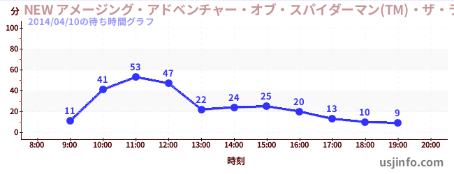 • NEW アメージング・アドベンチャー・オブ・スパイダーマン(TM)・ザ・ライド 4K3D$B$N(B2014年04月10日の待ち時間