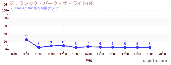 • ジュラシック・パーク・ザ・ライド(R)$B$N(B2014年04月10日の待ち時間
