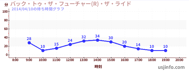 • バック・トゥ・ザ・フューチャー(R)・ザ・ライド$B$N(B2014年04月10日の待ち時間