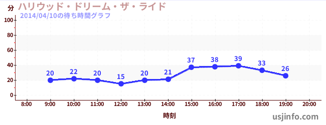• ハリウッド・ドリーム・ザ・ライド$B$N(B2014年04月10日の待ち時間