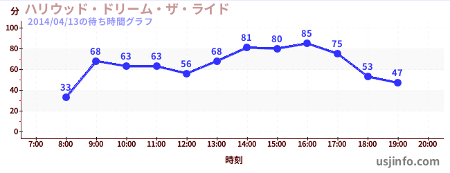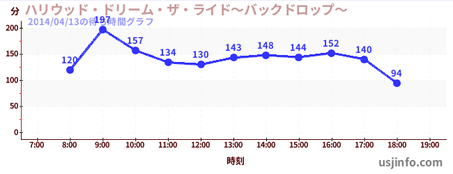 • ハリウッド・ドリーム・ザ・ライド〜バックドロップ〜$B$N(B2014年04月13日の待ち時間