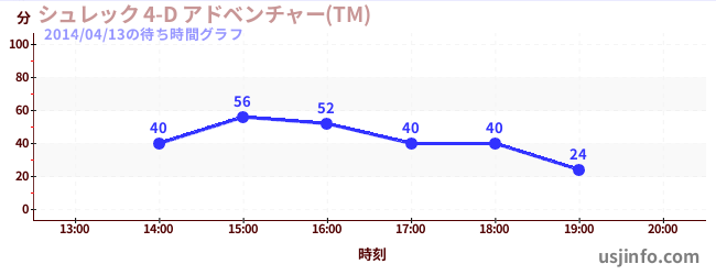 • シュレック 4-D アドベンチャー(TM)$B$N(B2014年04月13日の待ち時間