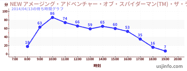 • NEW アメージング・アドベンチャー・オブ・スパイダーマン(TM)・ザ・ライド 4K3D$B$N(B2014年04月13日の待ち時間
