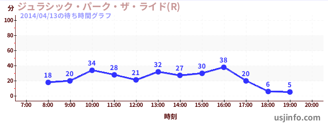 • ジュラシック・パーク・ザ・ライド(R)$B$N(B2014年04月13日の待ち時間
