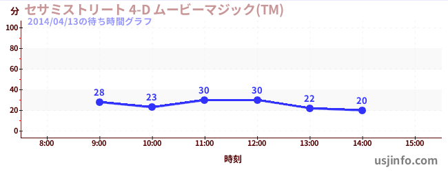 • セサミストリート 4-D ムービーマジック(TM)$B$N(B2014年04月13日の待ち時間